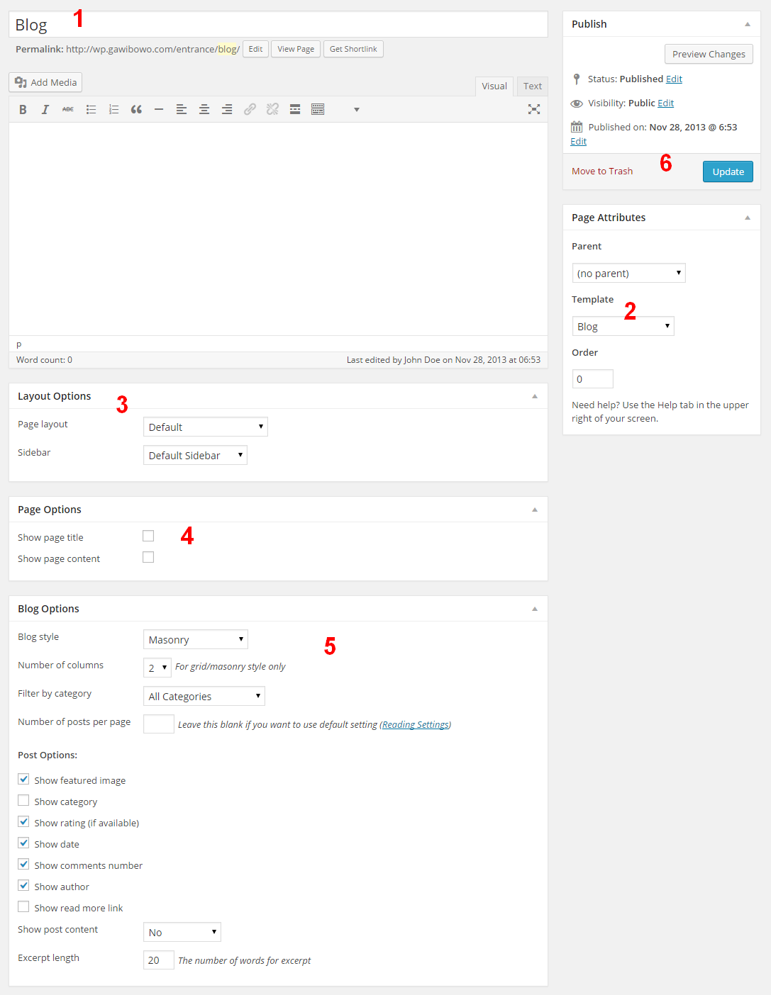 Please note: for blog templates, please use the settings on page edit screen (meta box).