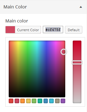 Main color is the primary color for this theme, used for links, active menu item, buttons, etc.