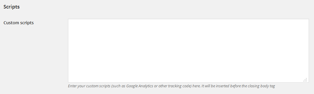 You can enter your custom scripts (such as Google Analytics or other statistics code) here. It will be inserted before the closing body tag.
