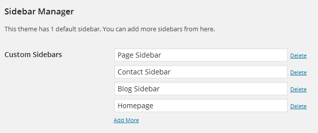 To add more custom sidebars, please go to admin » Appearance » Theme Options » Sidebar Manager