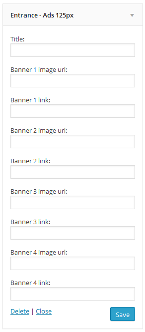 Ads 125px widget allows you to show banners, each banner has a 125 pixels width. You can customize the widget title, banner image url and banner link.