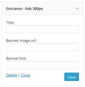 Ads 300px widget allows you to show a banner with a 300 pixels width. You can customize the widget title, banner image url and banner link.